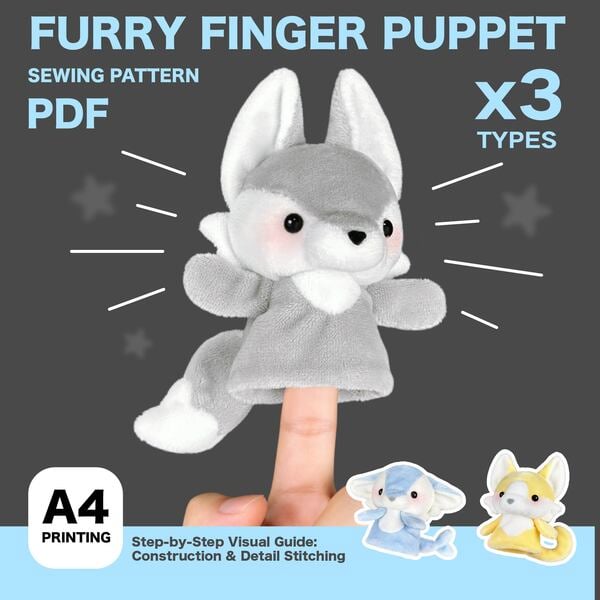 7cm Furry Finger Puppet Plush Sewing Pattern PDF + Tutorial