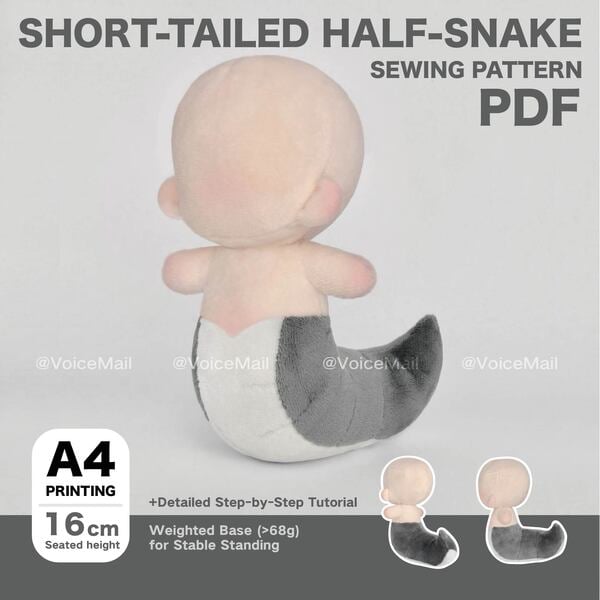 16cm Short-tailed Half-Snake plush doll sewing pattern PDF