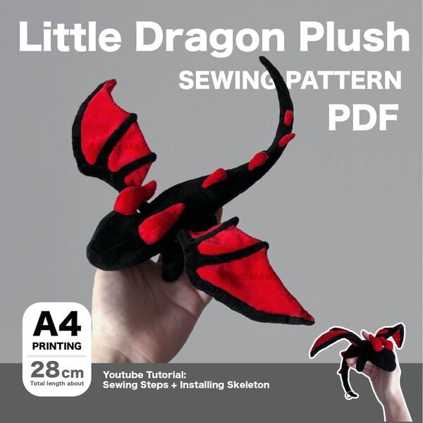 28cm Little Dragon Plush Sewing Pattern PDF